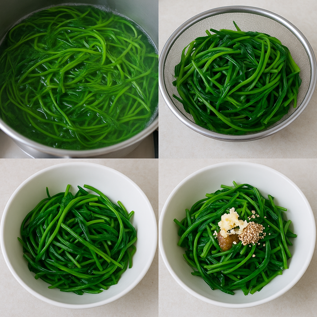 - 데친 후 물기를 꽉 짜서 양념이 잘 배도록