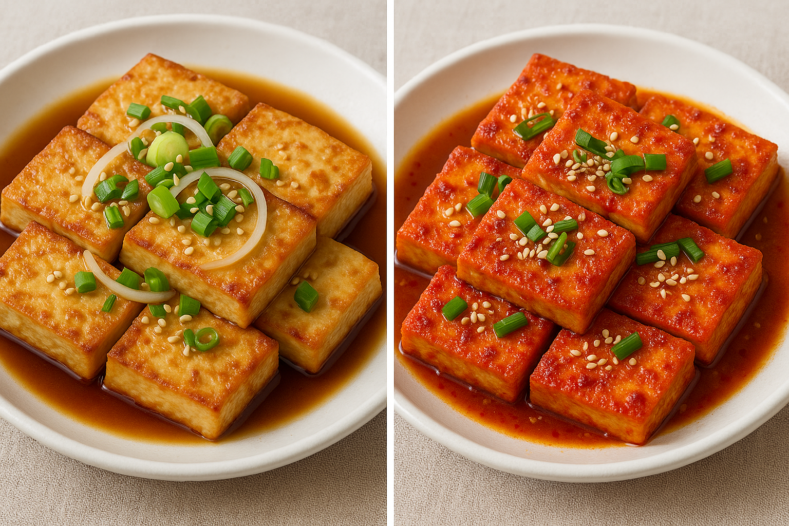 오늘은 담백하고 고소한 간장두부조림과 매콤달콤한 양념두부조림 두 가지를 한 번에 배워볼게요.