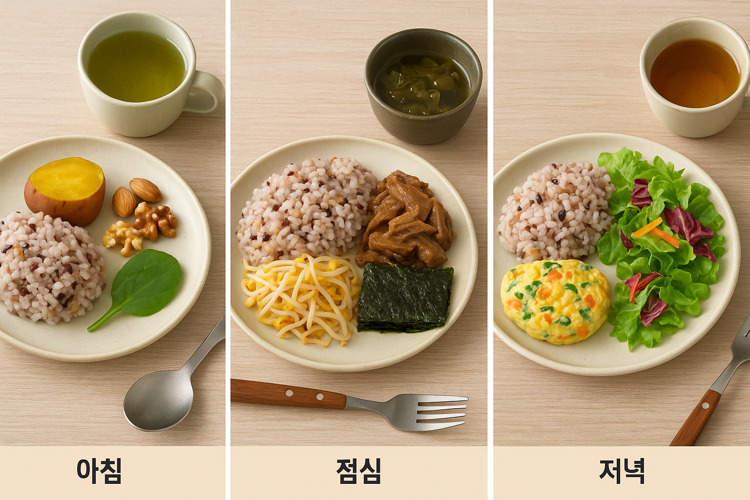 아침은 가볍게, 점심은 든든하게, 저녁은 포만감은 유지하면서도 칼로리를 줄인 구성이에요.