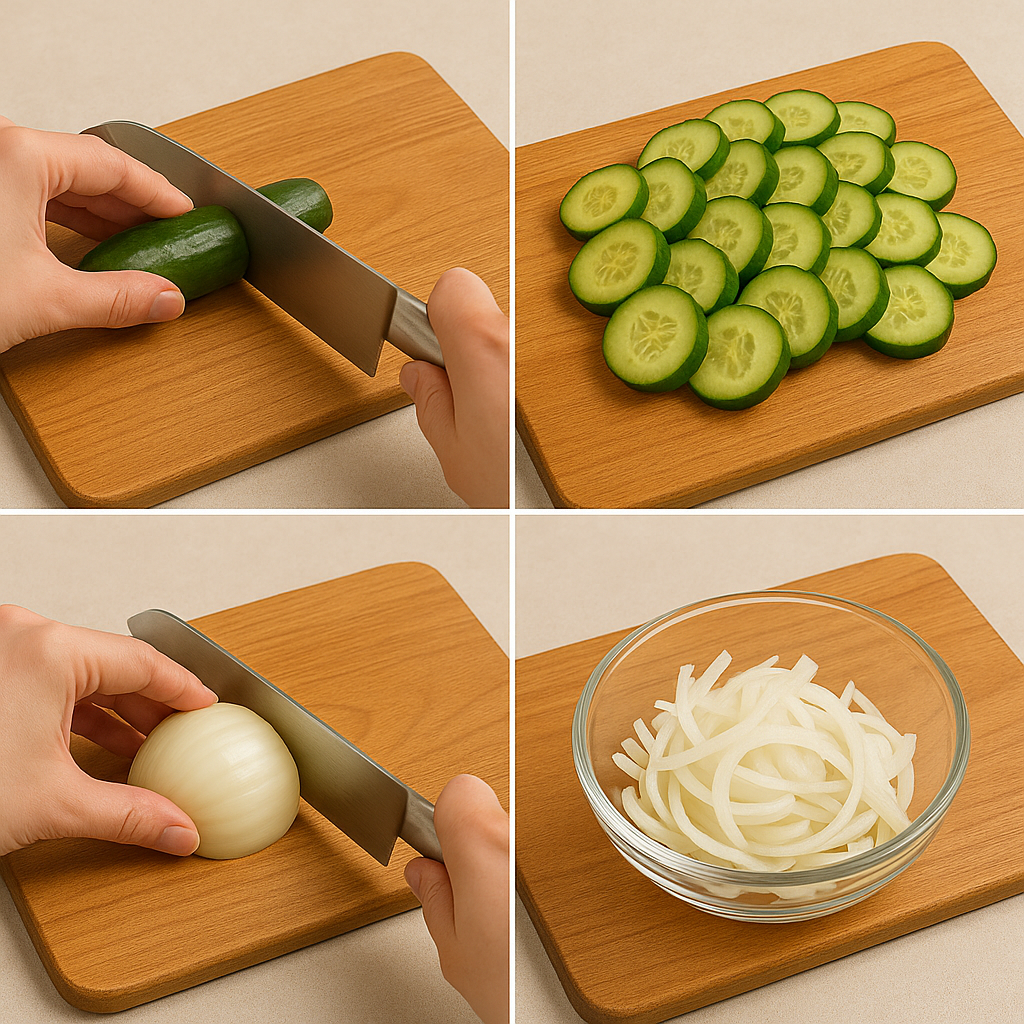 - 둥길게 썰기(아삭함↑) 또는 채칼 이용