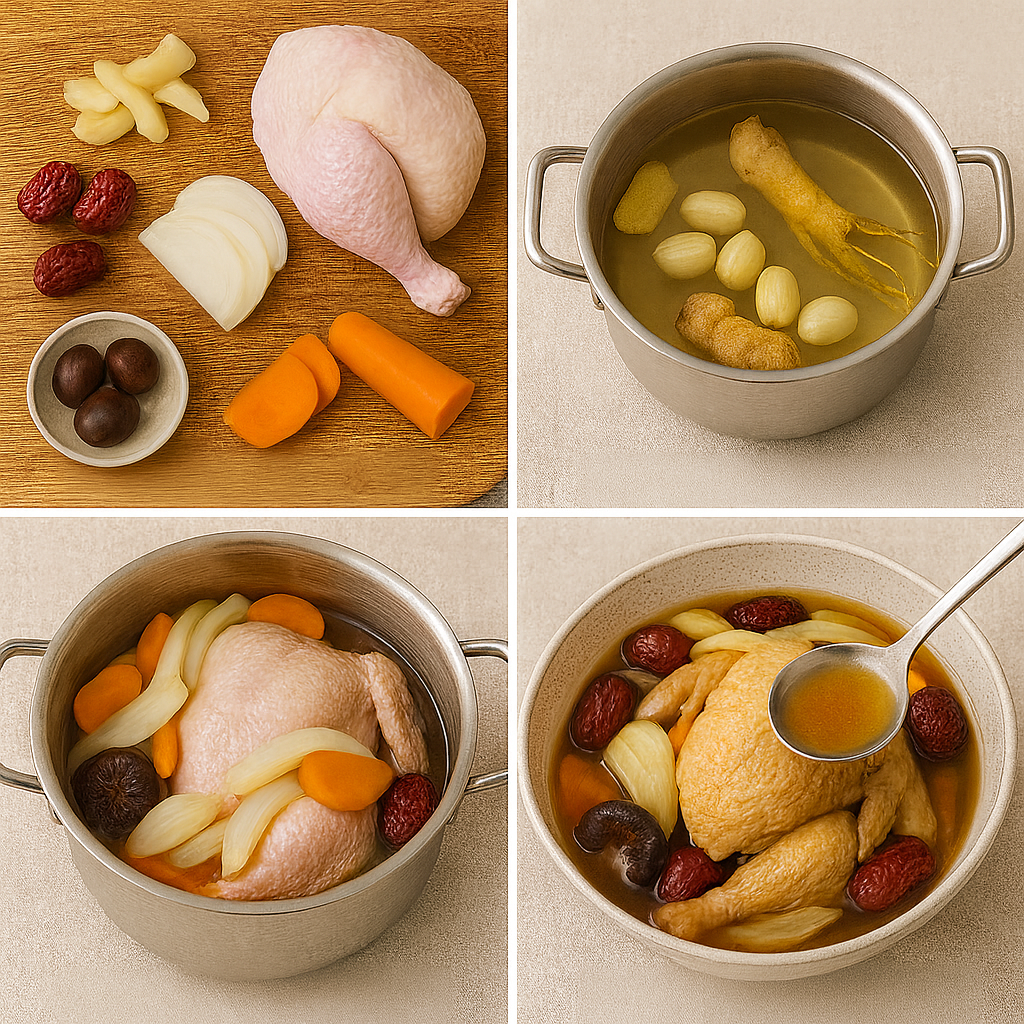 - 🌿 수삼 또는 인삼 1뿌리 (없으면 생략 가능)
