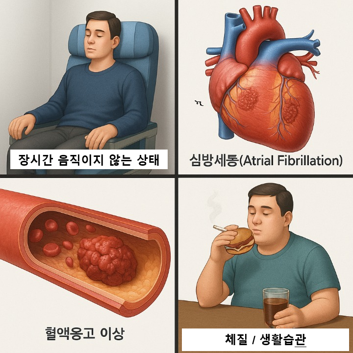 - 🧠 뇌졸중, ❤️ 심근경색, 🫁 폐색전증 등 치명적인 합병증 유발 가능