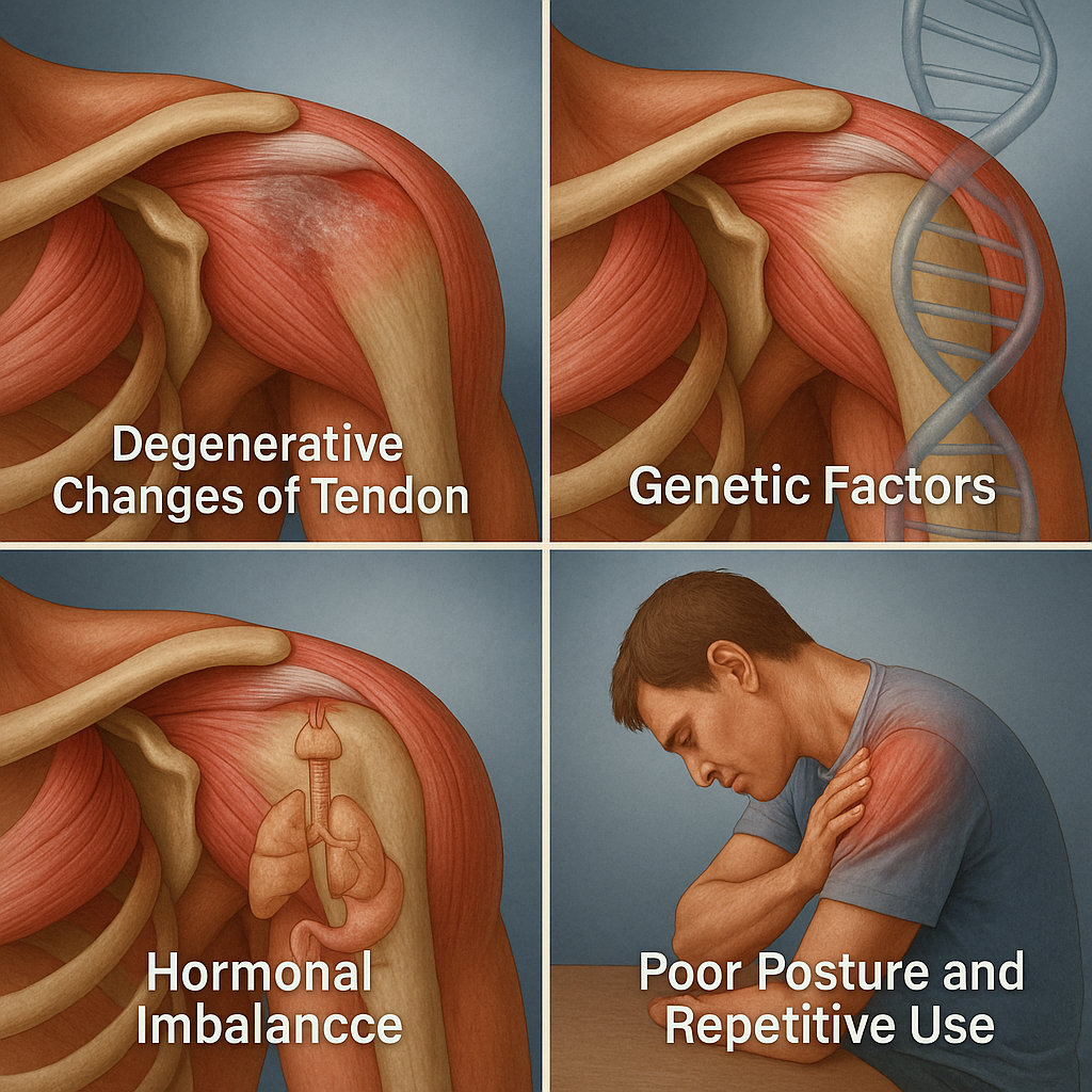 석회성건염의 원인은 명확하게 규명되진 않았지만, 다음과 같은 요인들이 관련 있다고 알려져 있습니다: