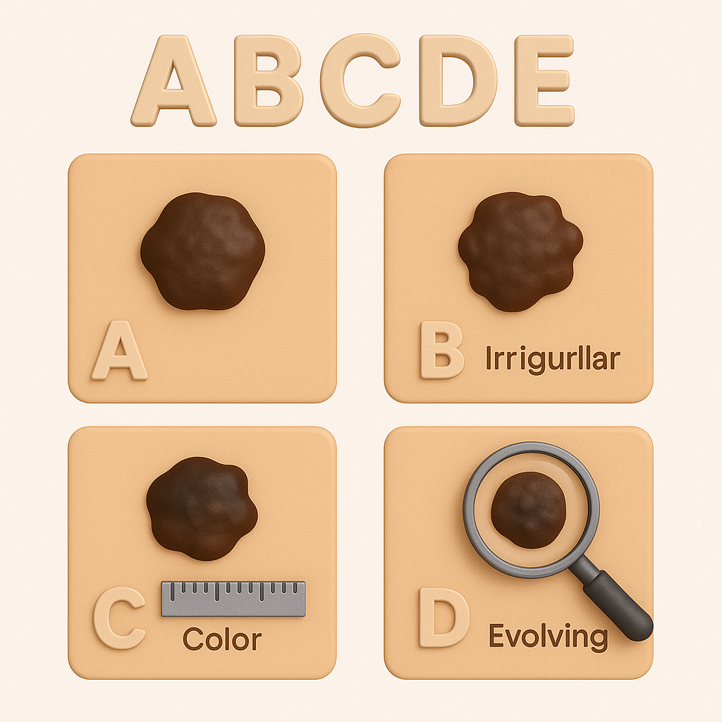 흑색종은 일반적인 점과 구분이 어려운 경우가 많습니다. 그러나 ABCDE 자가진단 규칙을 기억하면 조기 발견에 큰 도움이 됩니다.