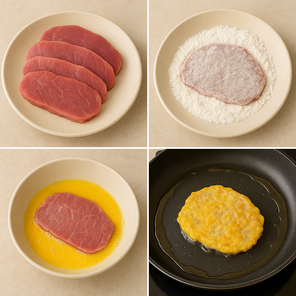 얇게 썬 고기를 밀가루와 계란 옷으로 감싼 후 기름에 노릇하게 부친 이 전통 음식은 남녀노소 누구나 좋아하는 맛을 자랑하죠.