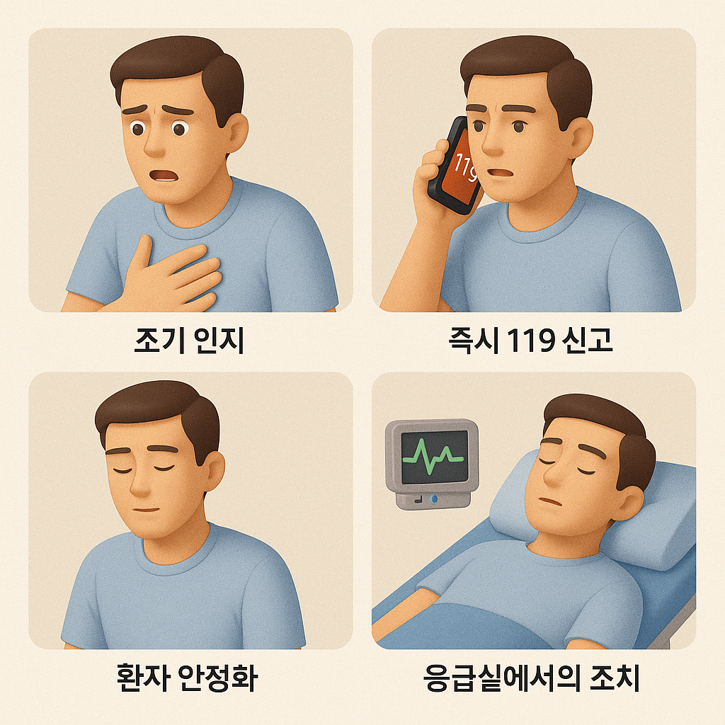 “조기 인지 → 119 신고 → 응급실 이송 = 생명 보존 공식”