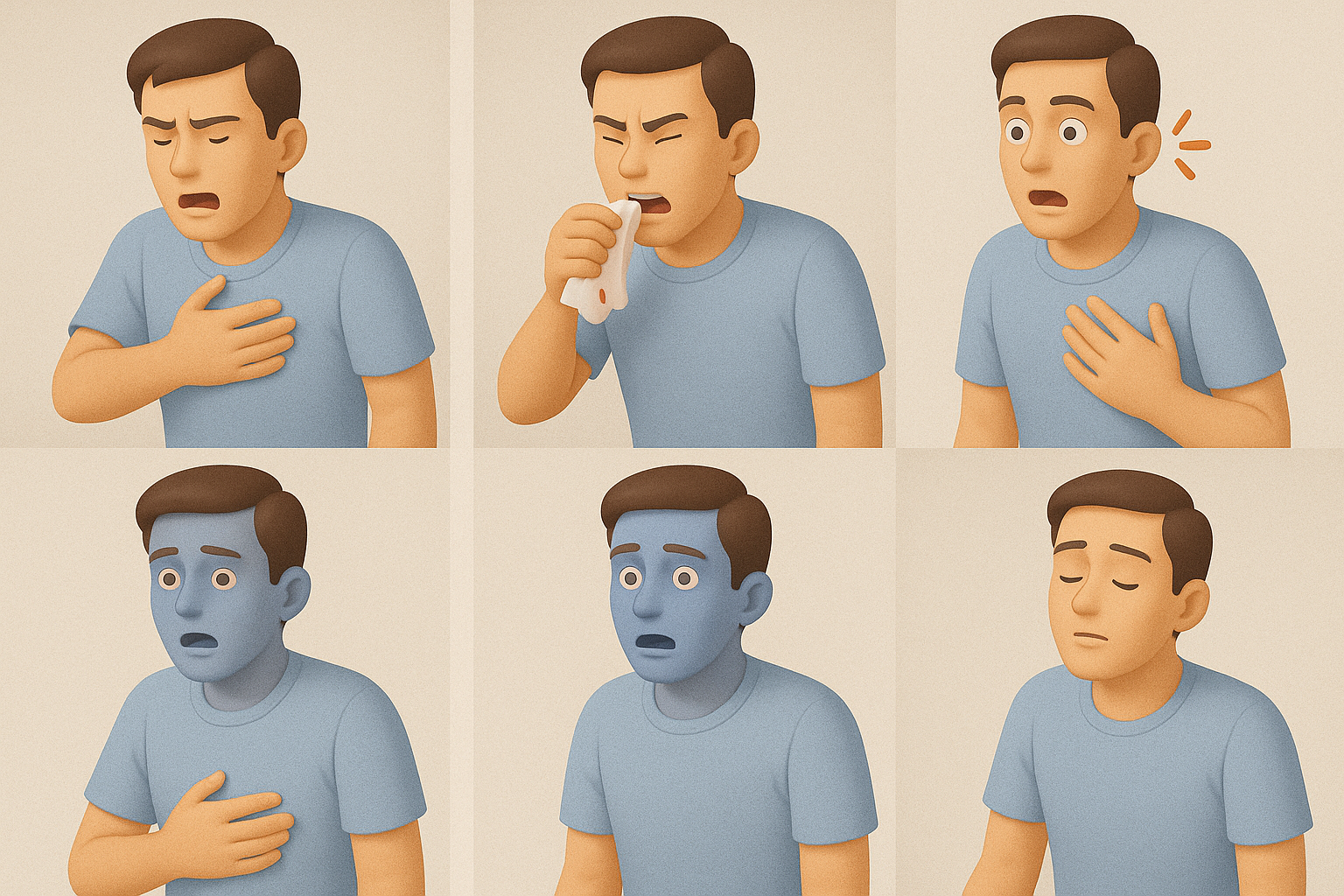 초기 증상은 감기, 불안, 과호흡 등과 혼동될 수 있지만, 다음과 같은 특징적 증상들이 갑작스럽게 나타난다면 즉각적인 대응이 필요합니다: