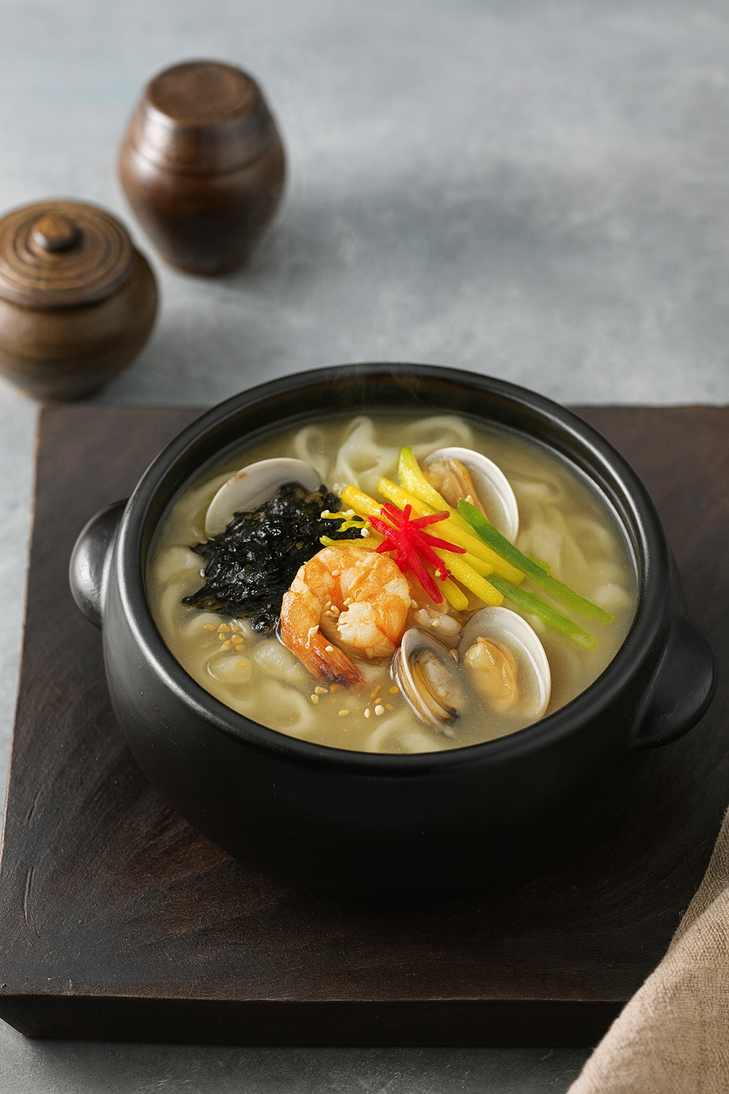 2️⃣ 국물은 저염으로 → MSG 없이도 바지락과 무로 감칠맛 충분