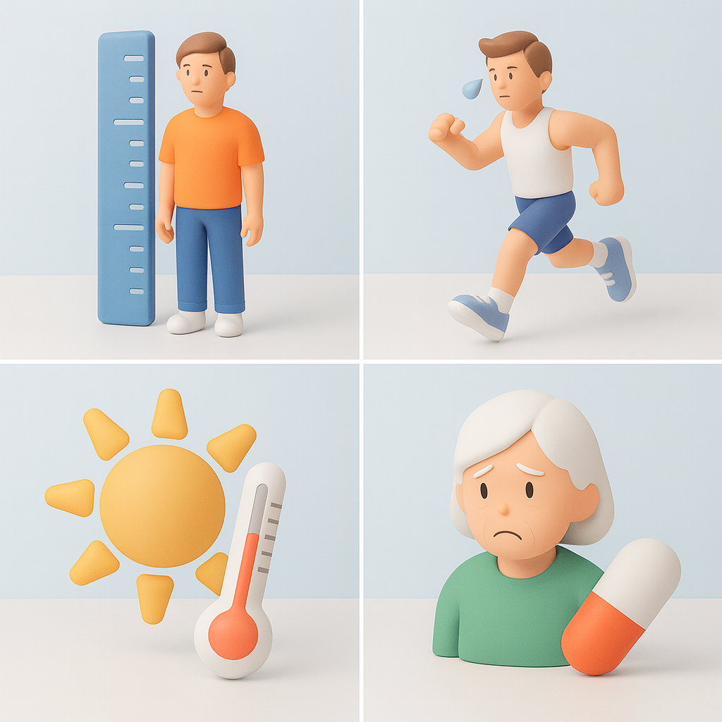 | 👵 연령 | 노인은 갈증을 잘 느끼지 않아 탈수 위험 ↑ |