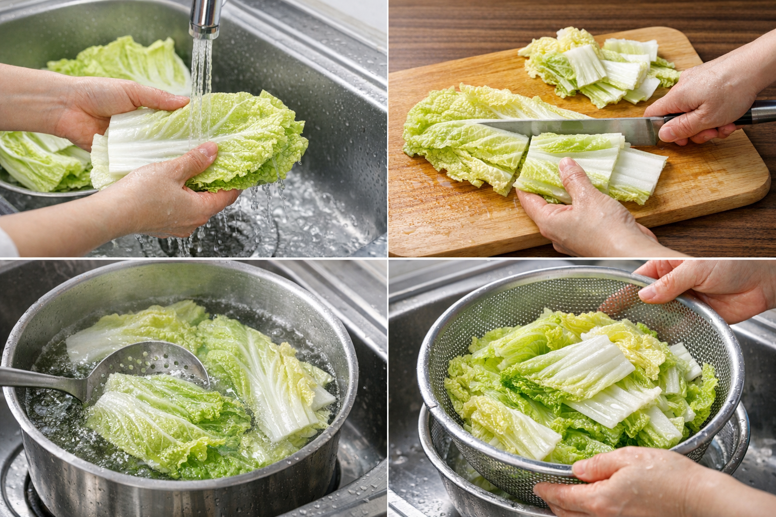 1️⃣ 배추 손질 및 데치기
