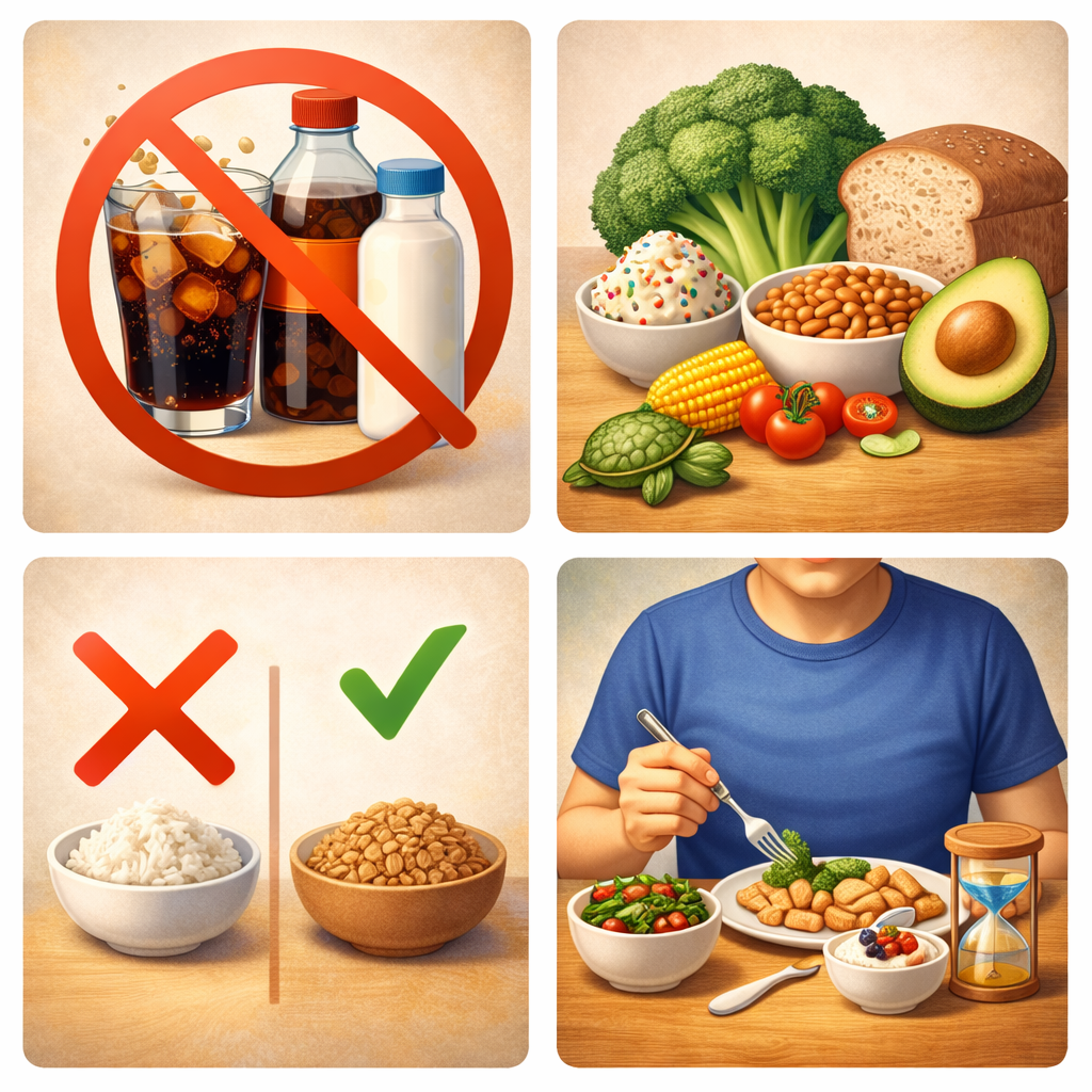 - 🍚 정제 탄수화물 대신 통곡물 섭취