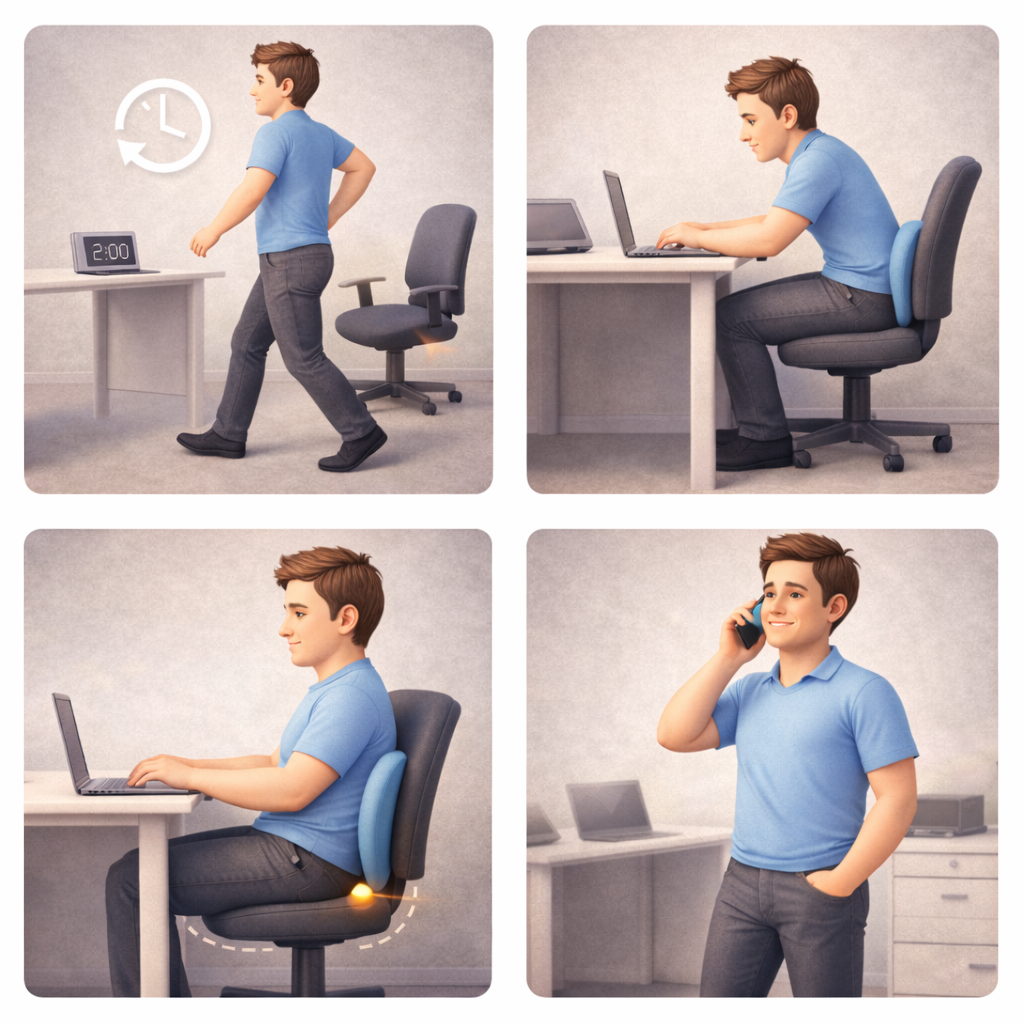 | 🧍♂️ 서서 전화 받기 | 엉덩이 근육 사용 촉진 |