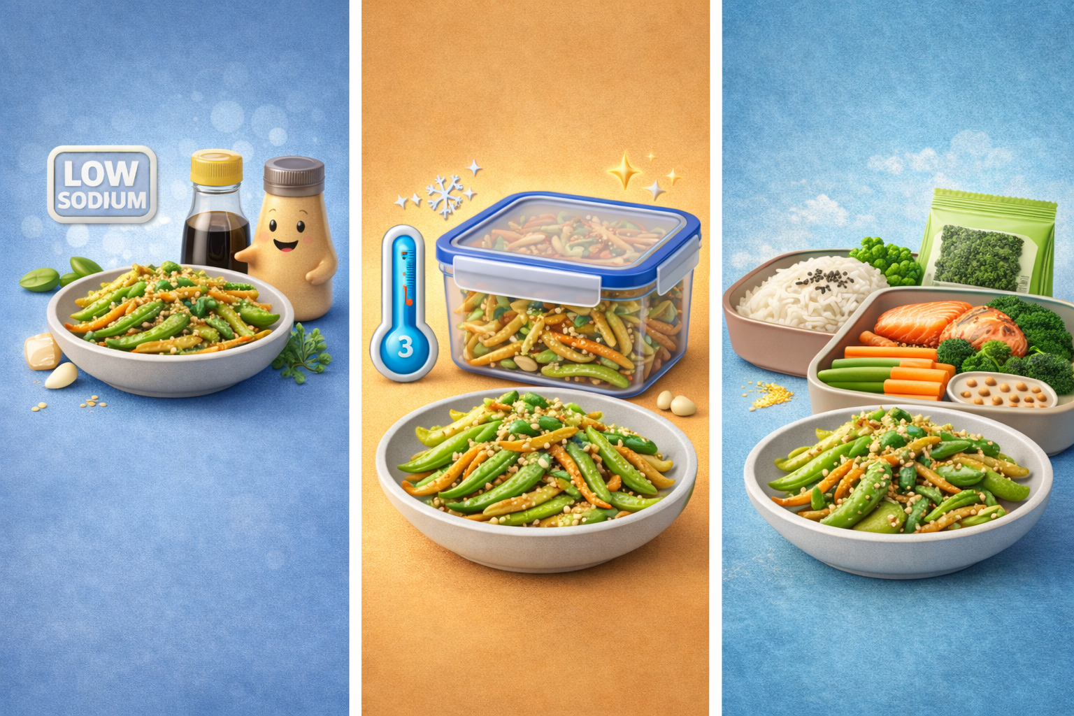 - 도시락 반찬, 비빔밥 재료, 샐러드 토핑, 고기 곁들임 반찬 등