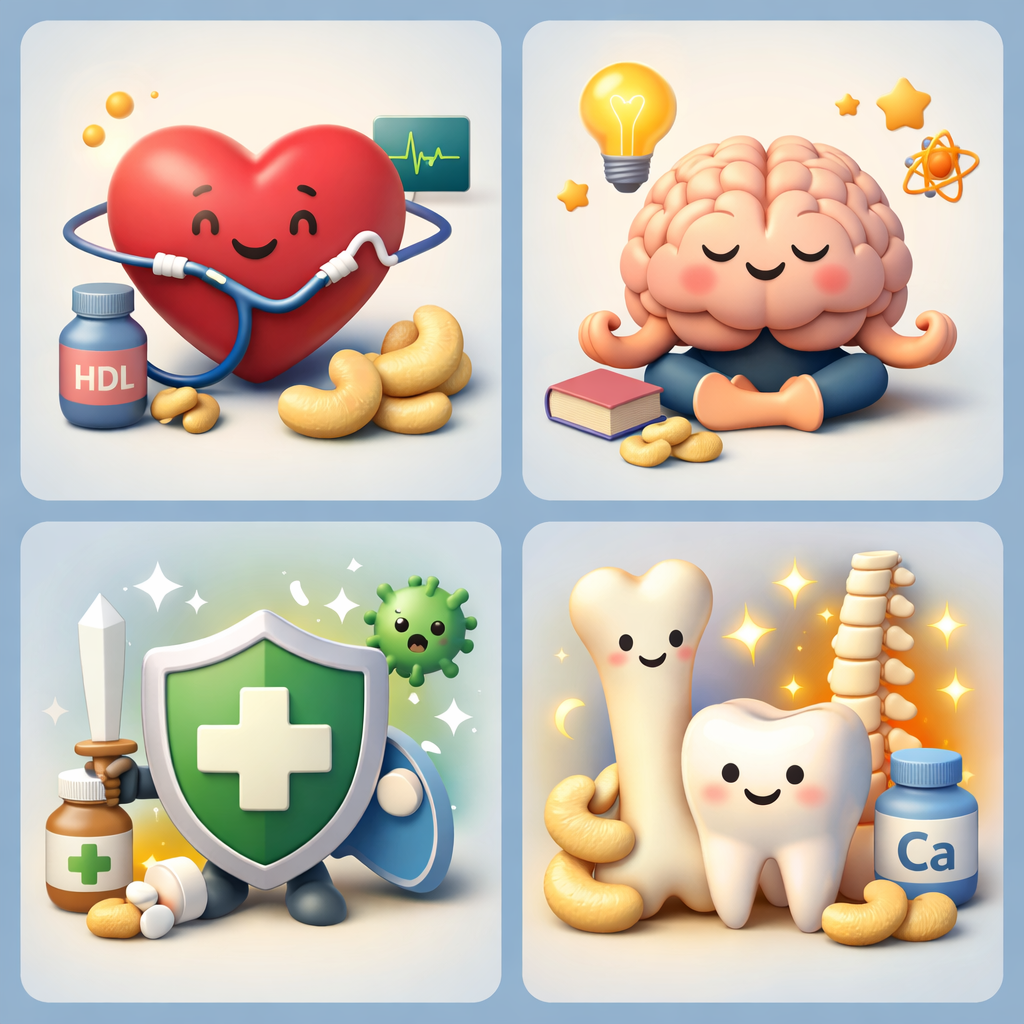 한 줌의 캐슈넛이 우리 몸에 어떤 변화를 줄 수 있는지, 지금부터 과학적인 근거와 함께 자세히 살펴보겠습니다.
