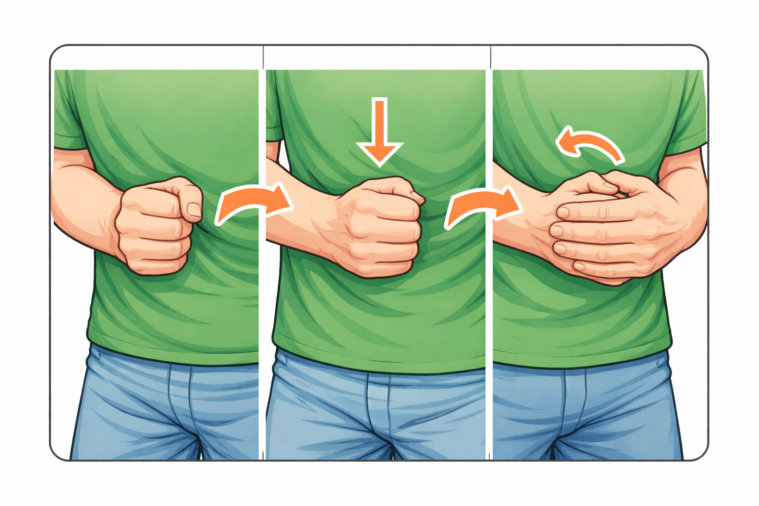 - ✊ 자신의 배꼽 위-명치 아래에 주먹을 대고