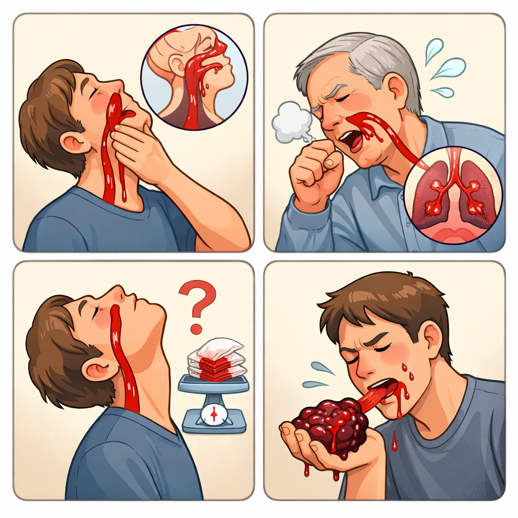 4) 🩸 혈괴(피 덩어리)가 목에 걸려 기침·구역질 유발