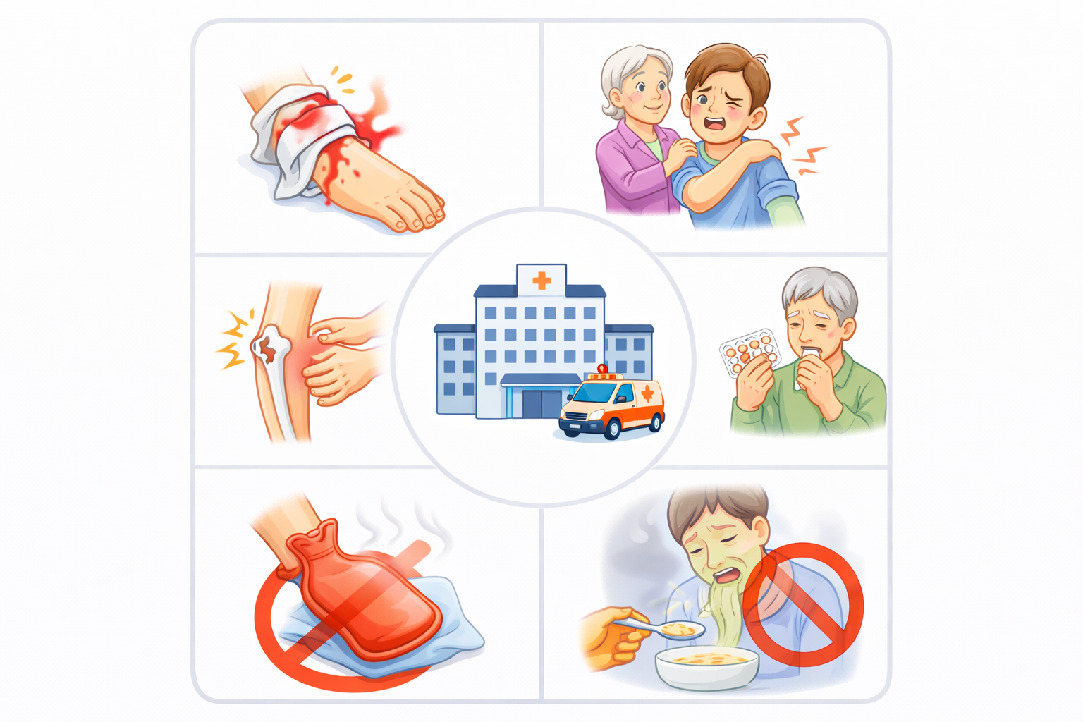 골절이 의심되면 “맞추지 말고, 움직임 최소화 + 지혈 + 고정 + 냉찜질”, 그리고 위험 신호면 즉시 119가 정답입니다.