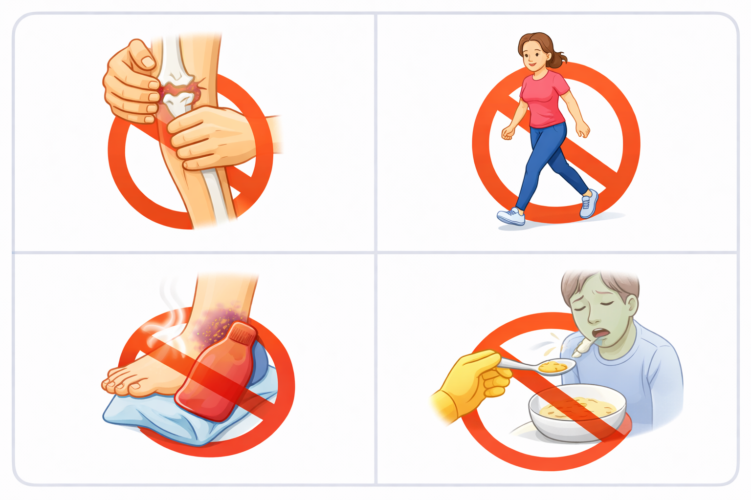 - 뼈를 억지로 펴거나 “원위치”로 맞추려 하지 마세요.