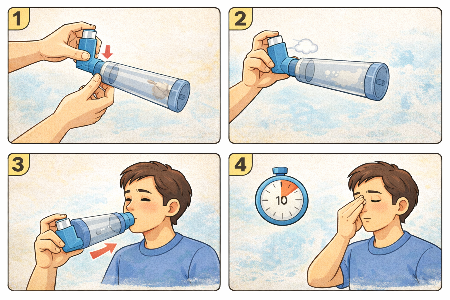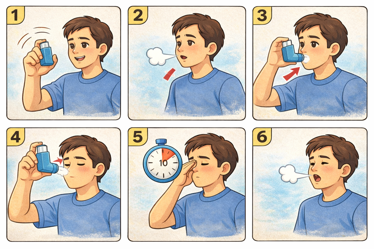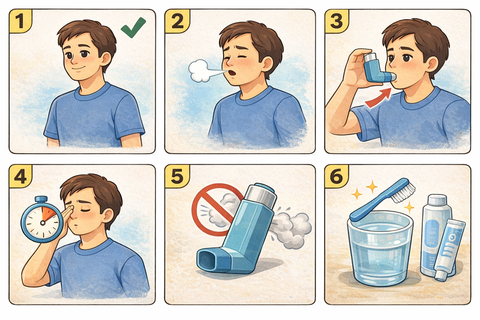 📌 “급하게 훅!” 들이마시면 약이 목에 붙고 폐로 덜 들어갈 수 있어요. (MDI는 느리게, 깊게)