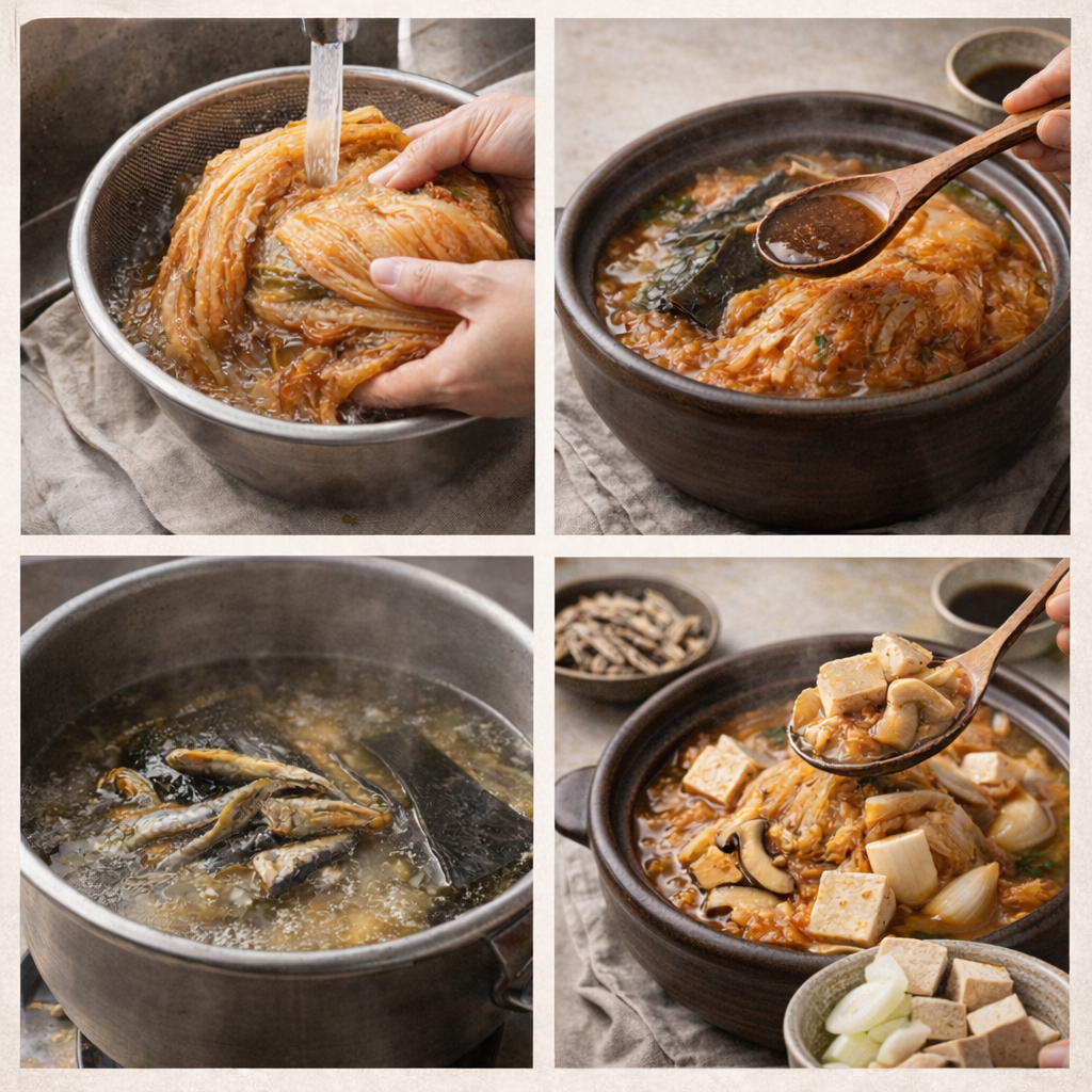 멸치가 들어가면 전체 맛이 한층 단단해지고, 김치의 산미를 자연스럽게 잡아 줍니다.